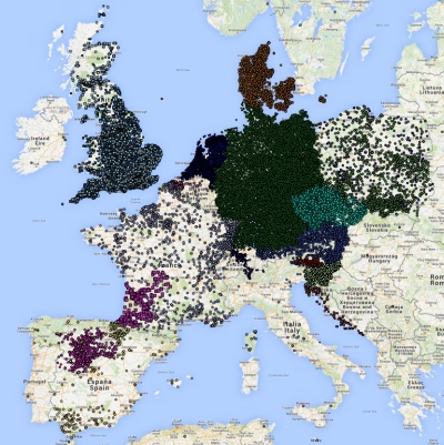 Overview of geocoded locations with pipe organs in Europe as of 2014-12-31.